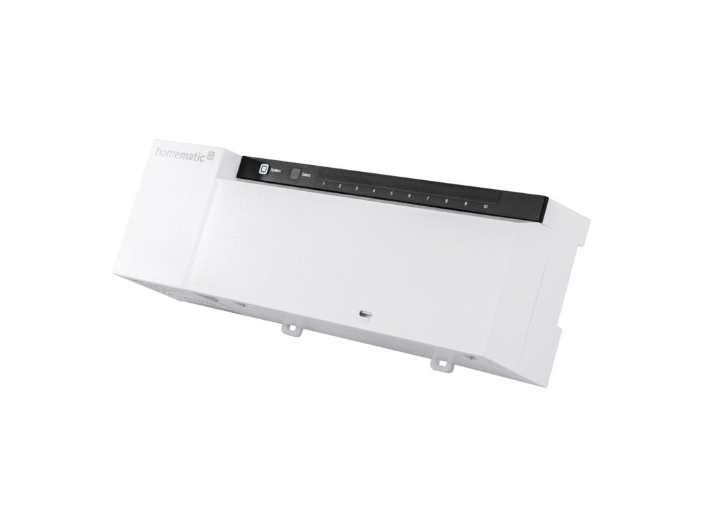 Autonomní - nastavení přes termostat, bezdrátová komunikace, 10 zón - každá druhá zóna umožní připojit 2 okruhy (15 celkem), bezpotenciálový relé kontakt pro tepelné čerpadlo (14+1), s Multi IO Box i pro ovládání chlazení, možnost připojit více členů současně, bezšroubové svorky, upevnění šrouby nebo na DIN lištu, napájení přes transformátor (HmIP-FAL24-TR).